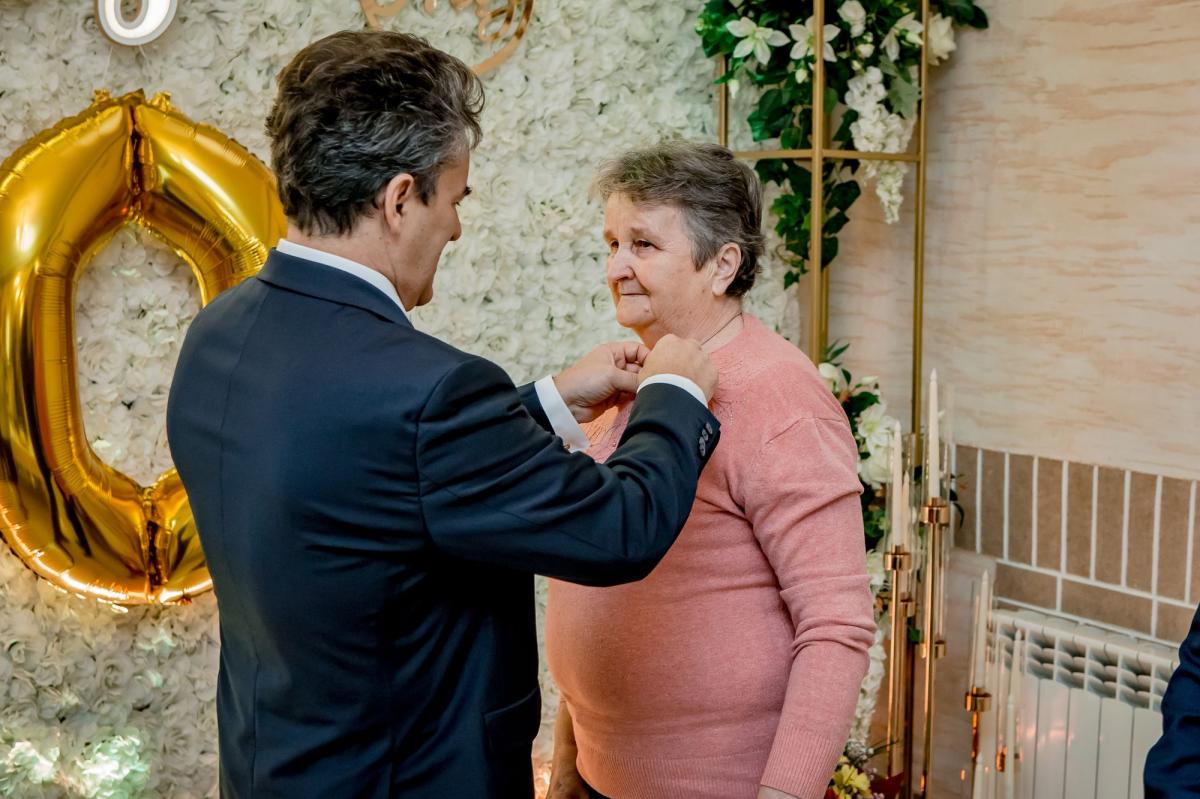 Dostojni Jubilaci po zakończeniu Mszy Świętej udali się do pobliskiego domu weselnego Acapulco w Kamionce Małej, gdzie wójt gminy w trakcie wzruszającego przemówienia podkreślił znaczenie i wyjątkowość tego Jubileuszu, a następnie odznaczył przybyłe pary Medalami za długoletnie pożycie małżeńskie, nadanymi przez Prezydenta Rzeczypospolitej Polskiej. Wręczając listy gratulacyjne i drobne upominki wójt Andrzej Stanek gratulował pięknej rocznicy i wyraził nadzieję, że przykład trwałości małżeństwa, wzajemnej troski i szacunku będzie wzorem dla młodego pokolenia. W uroczystości uczestniczyła Kierownik Urzędu Stanu Cywilnego Małgorzata Antkiewicz-Wójs, która również dostojnym Jubilatom złożyła piękne życzenia oraz gratulowała otrzymanego odznaczenia.